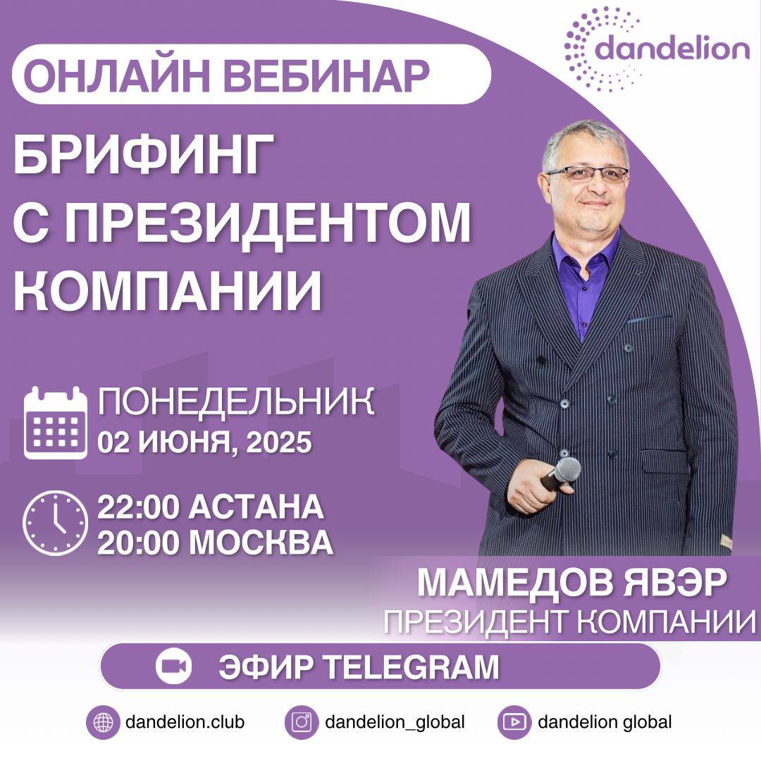 Рады сообщить о предстоящем событии, которое может изменить ваше представление о здоровье и благосостоянии! Приглашаем вас на эксклюзивный БРИФИНГ в формате \»Вопрос-Ответ\» с самим ЯВЕРОМ МУСАЕВИЧЕМ ⭐️, опытным предпринимателем и президентом компании DANDELION. Это уникальная возможность получить ответы на волнующие вас вопросы, узнать о секретах успеха и личном опыте человека, который посвятил себя созданию процветающего бизнеса в сфере здоровья и благополучия.