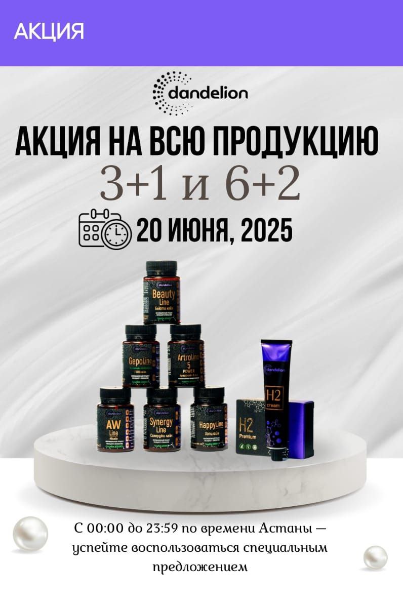 Друзья, отличные новости! Мы рады сообщить вам о грандиозной акции, которая пройдет только 20 июня! Вас ждут невероятные скидки на всю продукцию DANDELION! Это ваш шанс приобрести любимые товары по самым выгодным ценам. Не упустите возможность порадовать себя и своих близких!